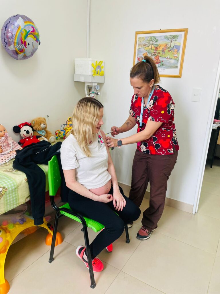 La vacunación, indicada entre las semanas 32 y 36,6 de gestación, permite la transferencia de anticuerpos al recién nacido y la protección durante los primeros meses de vida, período de mayor vulnerabilidad frente al VSR, principal causante de la Bronquiolitis, la Neumonía y otras Infecciones Respiratorias Agudas Bajas (IRAB).