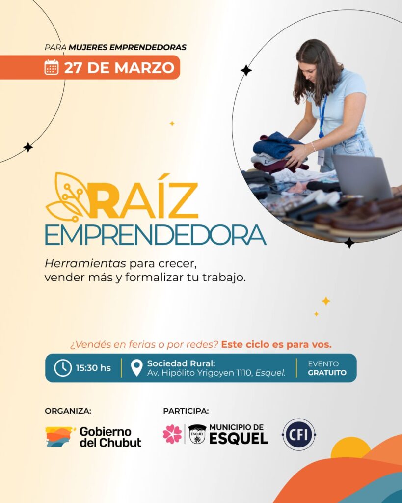 Con el objetivo de seguir integrando a mujeres de toda la provincia, el próximo viernes 27 de marzo llegará la 4° edición de “Raíz Emprendedora” a Esquel.