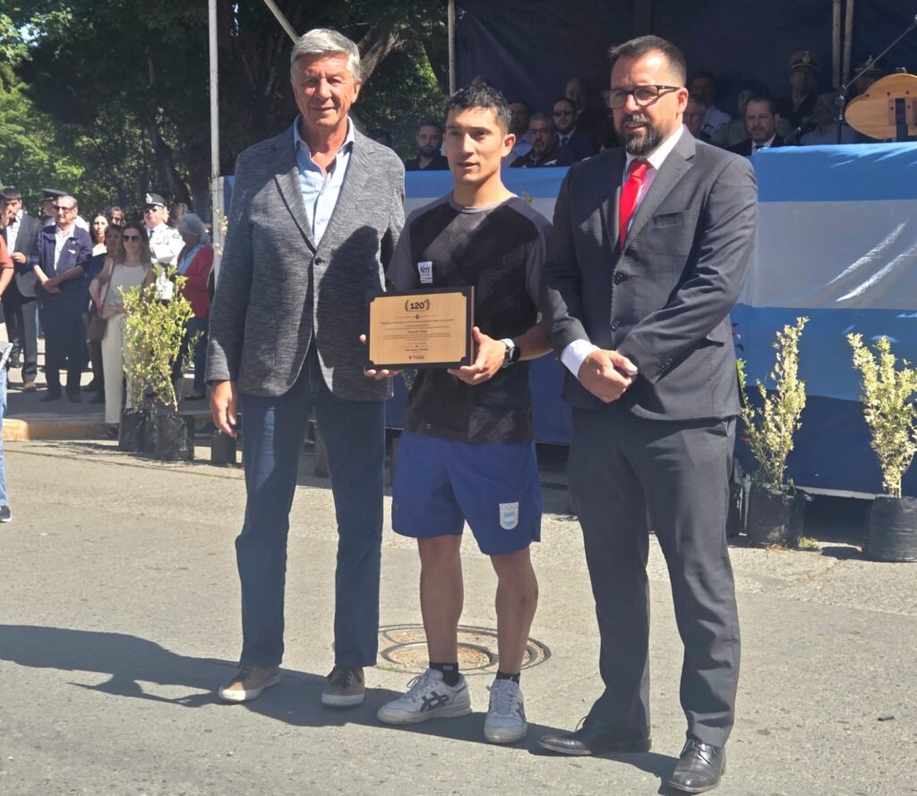 Tras la entonación del Himno Nacional Argentino y el Himno Oficial de la Provincia del Chubut, interpretados por la banda de música del Regimiento, se entregaron reconocimientos a deportistas laureados y a entidades que aportan a la comunidad, entre ellas la Cooperadora del Hospital, la Asociación Sirio Libanesa, bomberos voluntarios y brigadas que enfrentaron los recientes incendios en la región.
