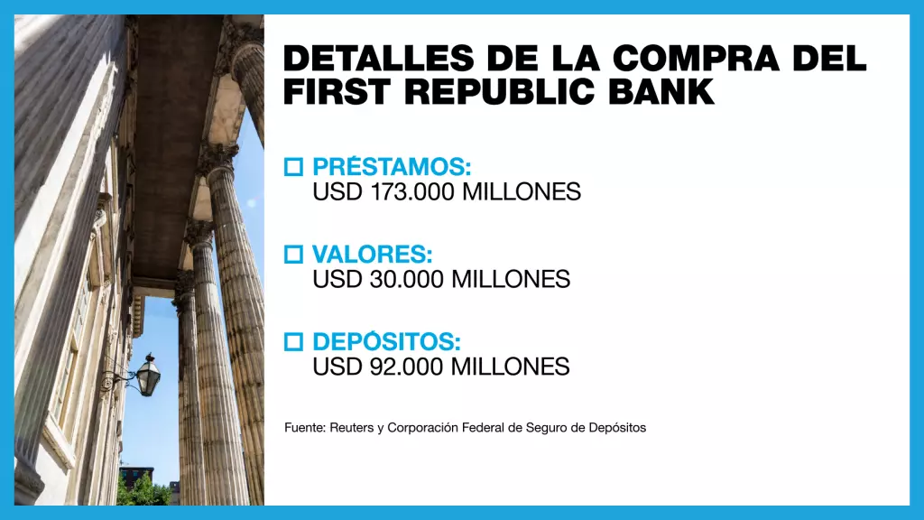 El gran líder bancario asumirá 92.000 millones de dólares en depósitos de First Republic y también compró la mayor parte de los activos, incluidos los 173.000 millones de dólares en préstamos y los 30.000 millones de dólares en valores.
