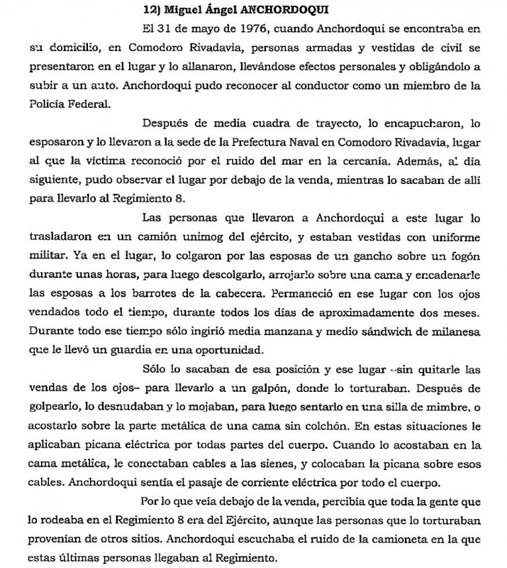 El testimonio de Miguel Ángel Anchordoqui, que se extendió con lujo de detalles por más de tres horas con una audiencia muy nutrida y conformada por muchos jóvenes, es un elemento fundamental en el desarrollo del juicio que se desarrolla en Comodoro Rivadavia por la Causa 8008 denominada “Chanfreau, Jorge Alberto y otros” donde están siendo juzgados los crímenes de lesa humanidad producidos en el Regimiento de Infantería Mecanizado 8 “General O’Higgins”.