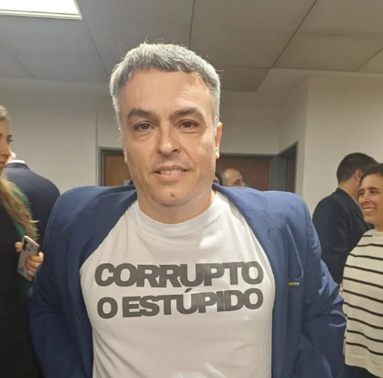 “Corrupto o estúpido”: la remera que usó un diputado contra Javier Milei por la estafa Libra