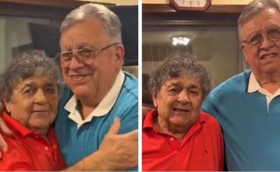 El abrazo entre Cacho Deicas y Marcos Camino de Los Palmeras