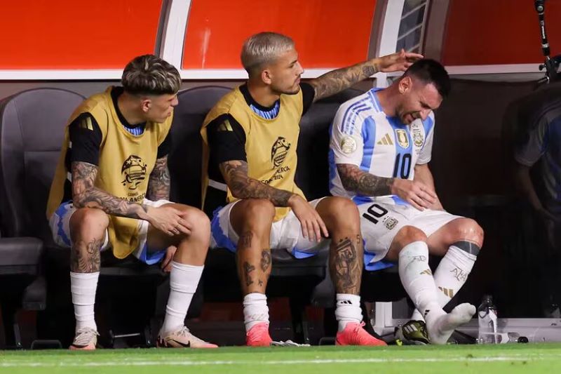 Messi se lesionó en la segunda mitad del partido: se dobló el tobillo derecho y en la misma acción recibió una falta de Santiago Arias. Esa dolencia y un pinchazo en un isquiotibial no le permitieron continuary fue visto llorando en el banco de suplentes junto a sus compañeros. Antes de los recientes cuatro títulos con Argentina, el astro sufrió tres decepciones seguidas: el Mundial de 2014, cuando perdió la final contra Alemania sobre el final del segundo tiempo extra, y las Copas América de 2015 y 2016, ambas frente a Chile. Toda esta etapa bajo la tutela de Scaloni representaron su redención y el ascenso definitivo al olimpo de la Albiceleste.