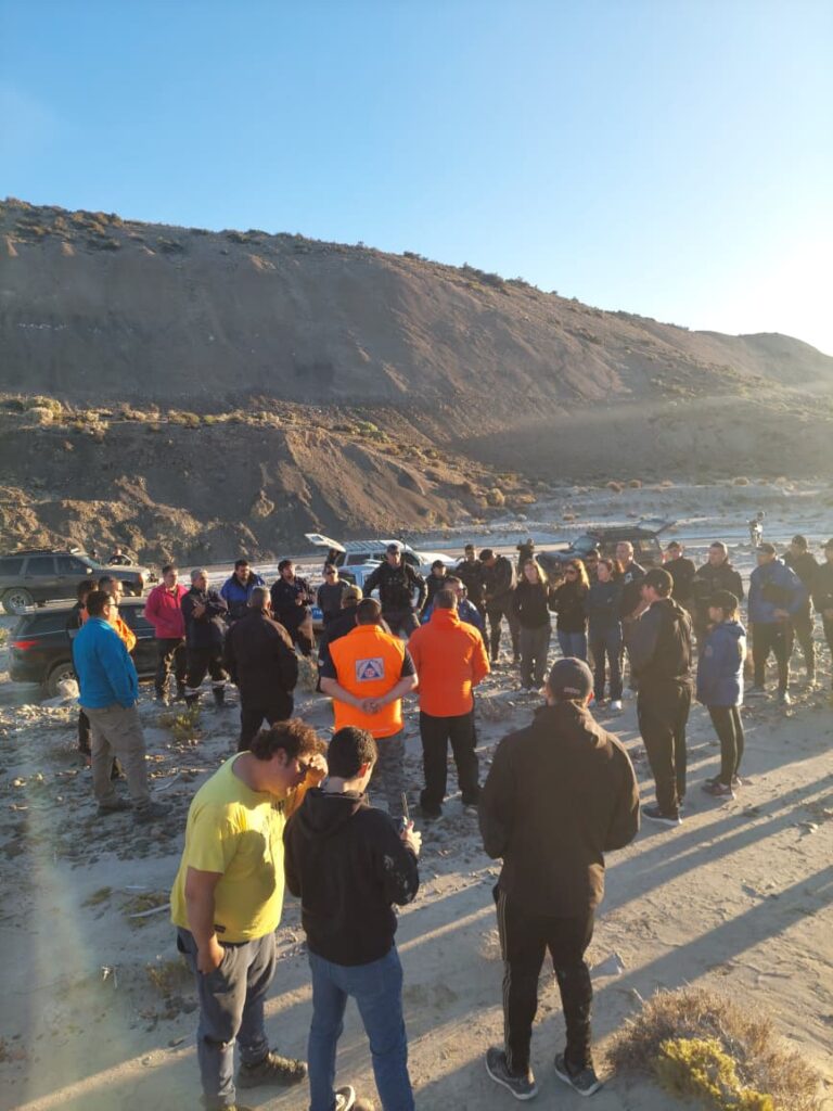 El ministro de Seguridad y Justicia, Héctor Iturrioz, supervisa en terreno el amplio despliegue de distintas unidades de la Policía del Chubut; Subsecretaría de Protección Ciudadana; Bomberos Voluntarios; Municipalidad de Comodoro Rivadavia; Prefectura Naval Argentina; junto con vehículos 4×4 particulares que llevan adelante rastrillajes por tierra, mar y aire para encontrar a las dos personas.