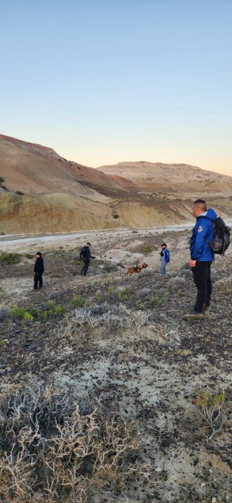 El rastrillaje se extendió hacia la costa y los caminos rurales cercanos a la estancia ‘Willatoski’ y hacia los ranchos de los pescadores con la colaboración de las Divisiones Canes de Comodoro Rivadavia y de Trelew; el GEOP; la Subsecretaría de Protección Ciudadana; cadetes del Instituto de Formación Policial y la Defensa Civil Municipal.