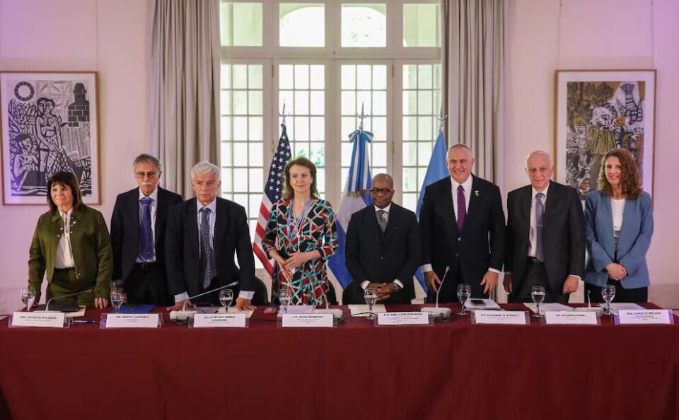 Estuvieron la canciller Diana Mondino y los ministros Patricia Bullrich (Seguridad), Mariano Cúneo Libarona (Justicia), Mario Lugones (Salud), el procurador Eduardo Casal; la representante Regional de la Oficina de las Naciones Unidas contra la Droga y el Delito (UNODC) para la Región Andina y el Cono Sur, Candice Welsch; y el Embajador de los EE.UU. en la Argentina, Marc R. Stanley.