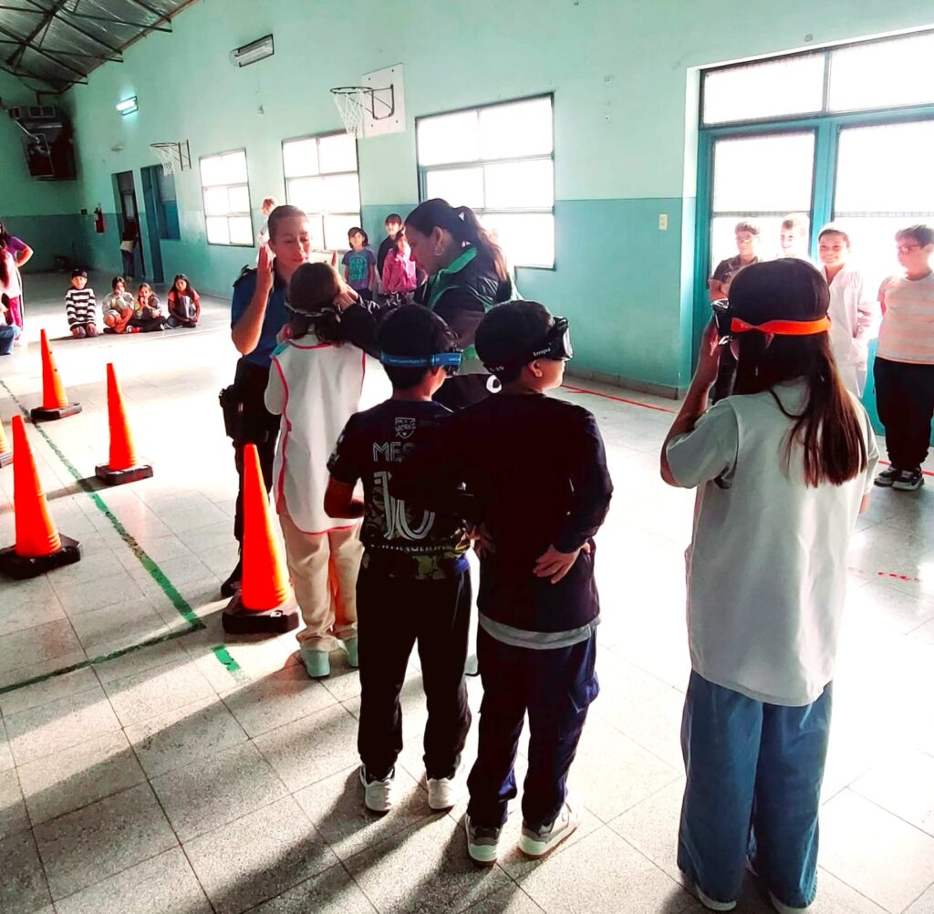Como parte de la jornada, los alumnos también participaron de un circuito vial con gafas de realidad alterada, una herramienta didáctica que permite simular los efectos del consumo de alcohol y estupefacientes al momento de desplazarse, con el propósito de generar conciencia sobre los riesgos que implican estas conductas.