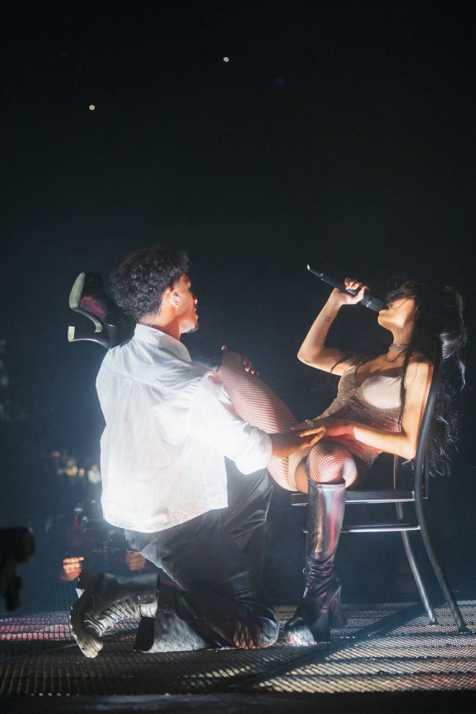 Sin soltar el micrófono ni un segundo, Espósito se desplazó por el escenario con precisión a lo largo de la pasarela. Cuando dejó caer el sombrero, irrumpieron sus bailarinas. Con ellas llegó “Sexy”, el segundo tema de la noche, y una ola de sensualidad bañó el estadio. El ritmo, la pose, los gestos, todo era parte de un nuevo lenguaje escénico que fue compartido con los asistentes del show, quienes le devolvieron cada muestra de afecto con clamores y cánticos, entre los que se destacaron “madre Lali”. Sin embargo, el grito colectivo se potenció con “N5”, cuando dio inicio al “Chape Tour”, uno de los momentos más esperados por su público. De la mano de su coreógrafa Denise de la Roche, compartieron un breve beso que provocó un temblor general. Cientos de bocas abiertas, celulares al aire, corazones acelerados.