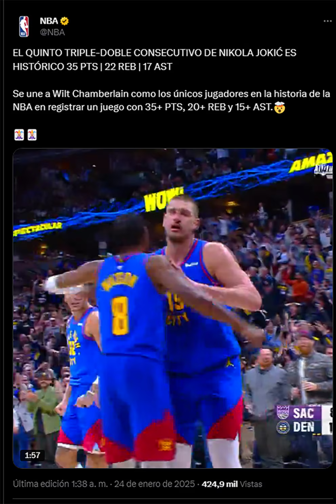 El impacto del serbio en la liga es comparable con hitos de épocas pasadas. Su actuación de 35 puntos, 22 rebotes y 17 asistencias lo convierte en el primer jugador desde Wilt Chamberlain en registrar estas cifras en un partido. Este dominio en el juego reafirma su estatus como el mejor jugador del mundo en la actualidad.