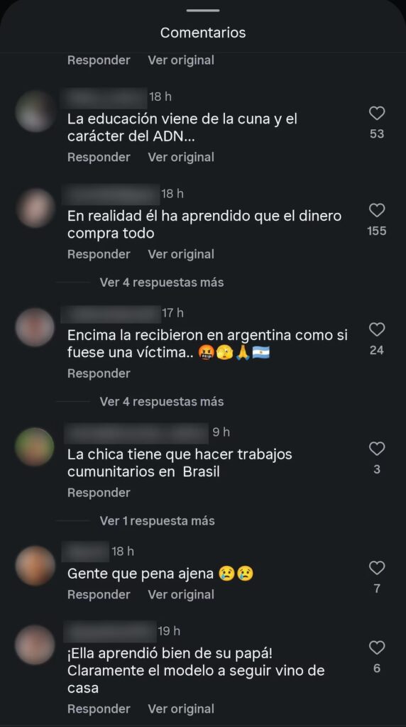 El episodio se difundió en diferentes portales del país vecino y en las redes sociales oficiales de los canales de noticias, donde numerosos usuarios se mostraron indignados con el accionar del padre de Agostina.