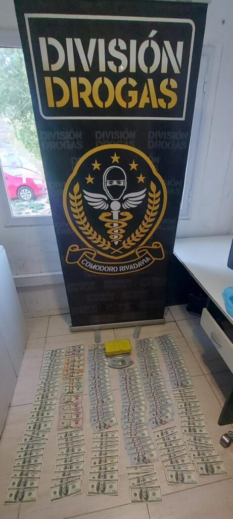La causa incluyó además tres allanamientos: uno en el barrio Fontana de Puerto Madryn y dos en domicilios ubicados en Ingeniero Budge y Monte Grande, provincia de Buenos Aires. En estos procedimientos se incautaron más de tres millones de pesos en efectivo, teléfonos celulares, documentación relevante y el vehículo utilizado para el traslado de la droga.