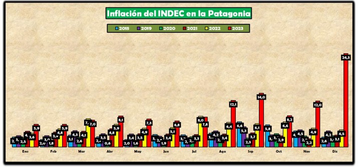 Pelearle a la inflación cada vez más es una misión imposible, más aún con subas descontroladas como las que se dieron el mes pasado y con una acumulación enloquecida durante todo el 2023. El país y la Patagonia esta nuevamente frente al peor proceso inflacionario desde 1990, cuando se salía lentamente de la hiper de 1989.