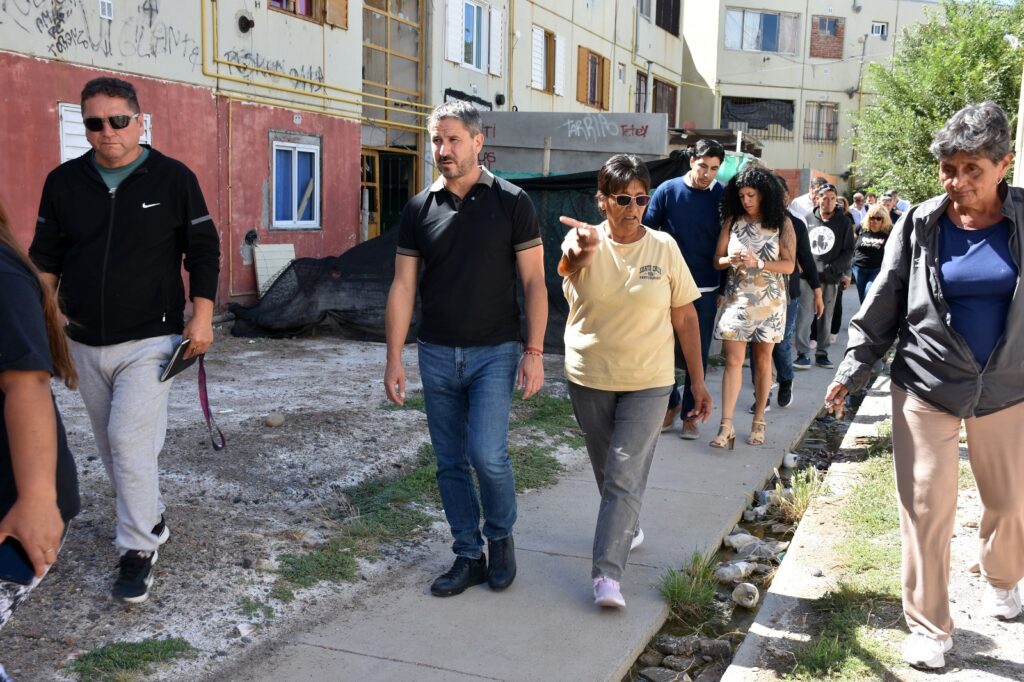 Durante la jornada, el intendente dialogó con residentes y recorrió diferentes espacios del barrio, donde se relevaron necesidades vinculadas a iluminación, limpieza, mantenimiento de espacios comunes y mejoras en áreas de recreación.