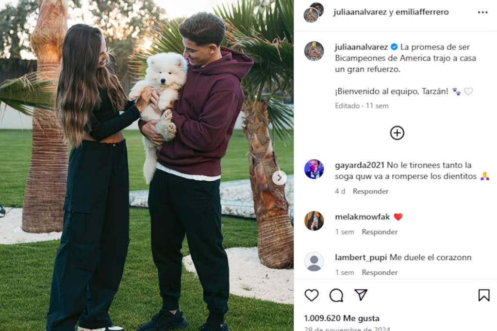 Julián Álvarez y Emilia Ferrero presentaron a su nueva mascota
