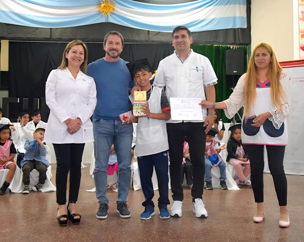 Del acto participaron, junto al intendente Gerardo Merino, la coordinadora de Educación, María Emilia Damadio; la directora de la Escuela N.º 64, Fabiana Poggi; otras autoridades municipales, personal de la institución y las familias de los flamantes egresados.