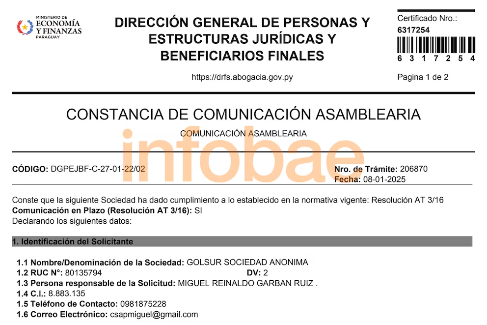 Los cambios societarios se informaron ante la Dirección General de Estructuras Jurídicas, del Ministerio de Economía de Paraguay.