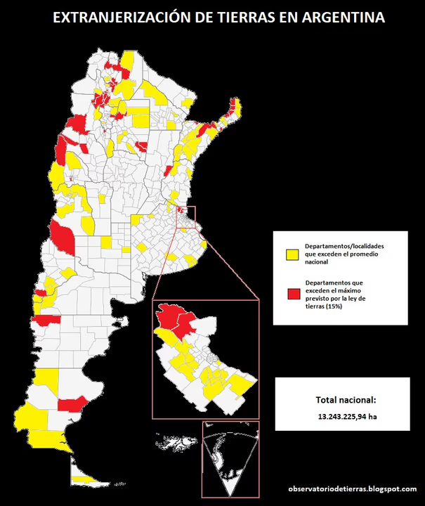 Con el boom internacional del precio de los alimentos y la devaluación de Argentina, el proceso de extranjerización se profundizó. Por ese motivo, en 2011 se sancionó la Ley de Protección al Dominio Nacional sobre la propiedad, posesión o tenencia de las tierras rurales, más conocida como Ley de Tierras (N° 26.737).