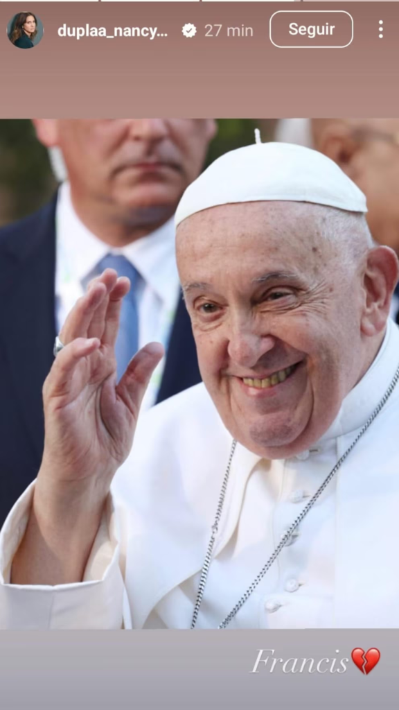 Nancy Dupláa, por su parte, optó por una expresión sintética pero emotiva. Compartió una imagen del Papa y un emoji de corazón roto, símbolo del duelo ante su fallecimiento.