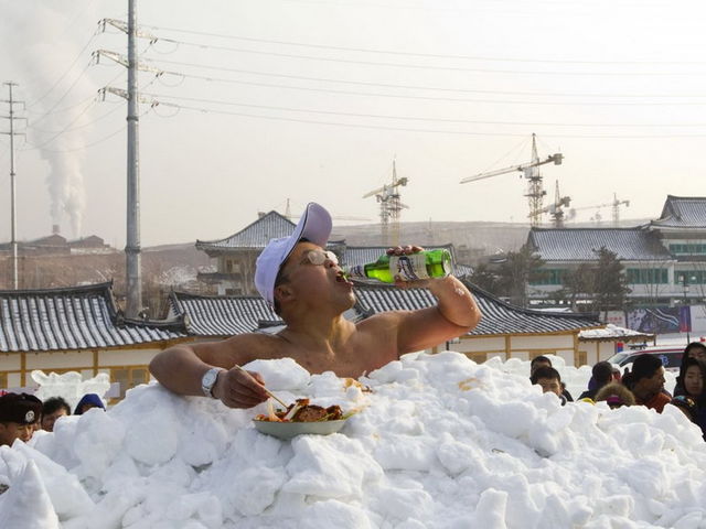 Jin Songhao, un chino, aguantó 46 minutos y 7 minutos desnudo en la nieve.