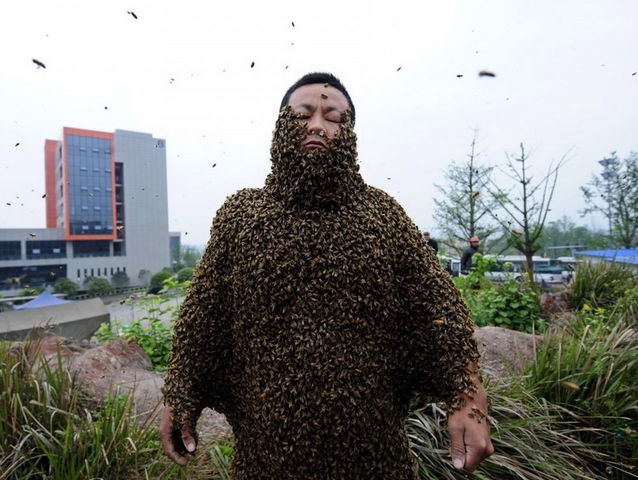 She Ping, un apicultor chino, tuvo 331.000 abejas (73 libras) sobre su cuerpo, al mismo tiempo.