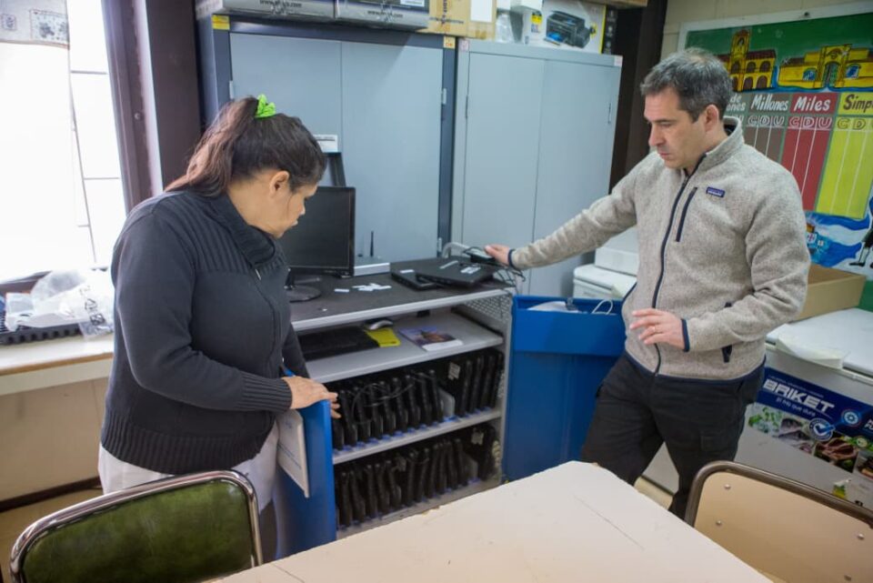 En la recorrida, Juan Pablo Luque visitó la escuela 148 de Río Mayo donde “los directivos hacen un trabajo excepcional” y que “continúan usando las computadoras entregadas en 2021 por el Estado Nacional”.