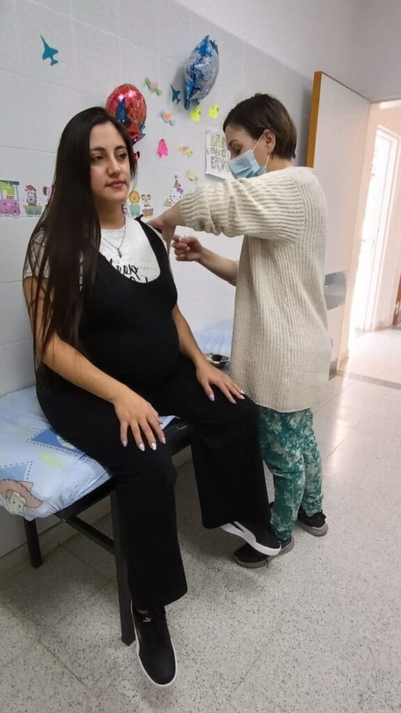 En ese sentido, la vacuna está indicada a todas las personas gestantes durante el octavo mes de embarazo (entre las semanas 32 y 36) y, de esta manera, los bebés quedan protegidos desde el nacimiento hasta los 6 meses de vida.