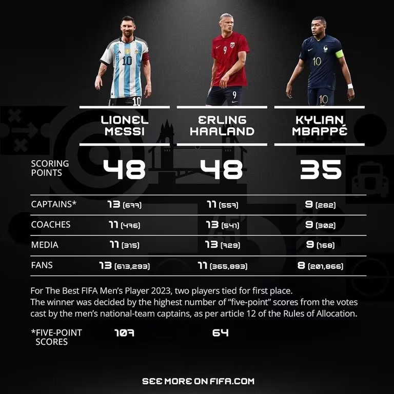 Lionel Messi fue elegido por encima de Kyllian Mbappé y Erling Haaland. El astro rosarino no viajó a recibir el premio The Best.