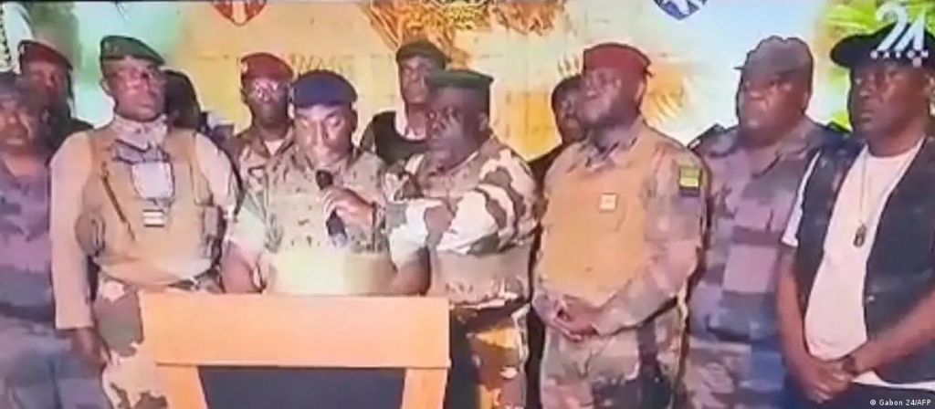 Doce militares, que dijeron representar a todas las fuerzas policiales y de defensa del país, aparecieron en la cadena Gabon 24, cuya sede se encuentra en la propia presidencia, para anunciar “el fin del régimen actual”, la anulación de las elecciones y la disolución de “todas las instituciones” de este país en el centro-oeste de África.