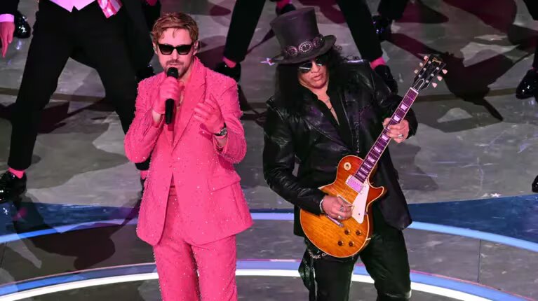 Ryan Gosling fue uno de los protagonistas de la noche de los Premios Oscar 2024 cuando interpretó en vivo “I’m Just Ken”, una de las canciones que forman parte de la banda sonora de Barbie. El actor hizo bailar a las estrellas de Hollywood en el público con una performance que incluyó la participación del elenco de la película y de Slash, el guitarrista de Guns N’ Roses.
