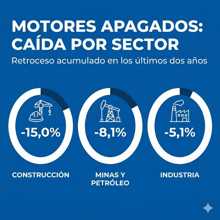 El informe identifica como principales motores de la contracción a la Construcción (-15,0% en dos años), la Explotación de Minas y Canteras (-8,1%) y la Industria Manufacturera (-5,1%).