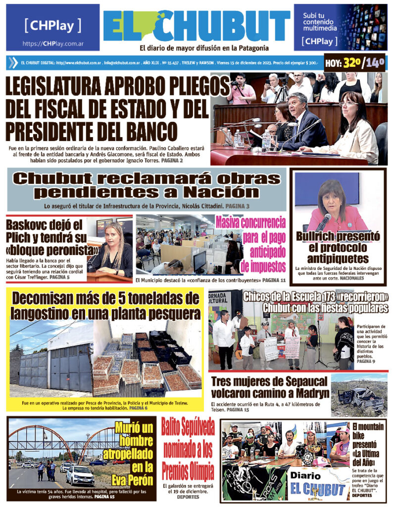 Tapas de diarios de Chubut de este viernes 15 de diciembre 15 diciembre, 202315 diciembre, 2023 El Chubut Jornada