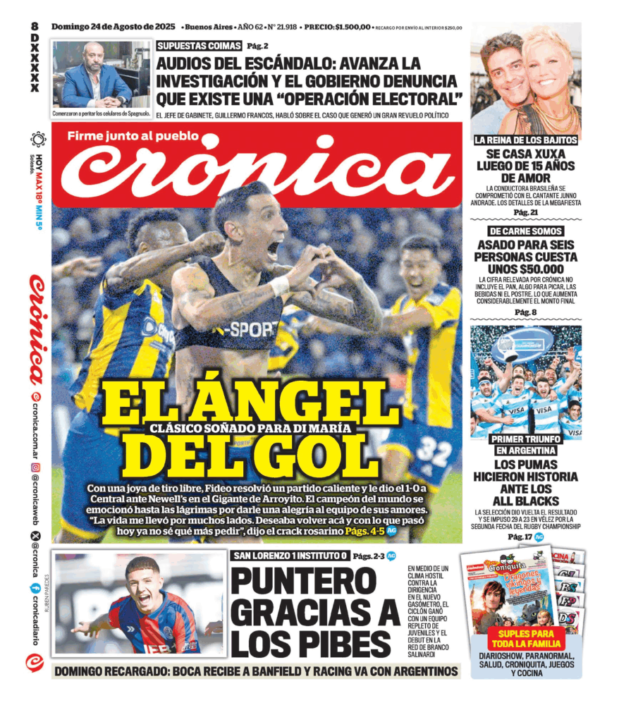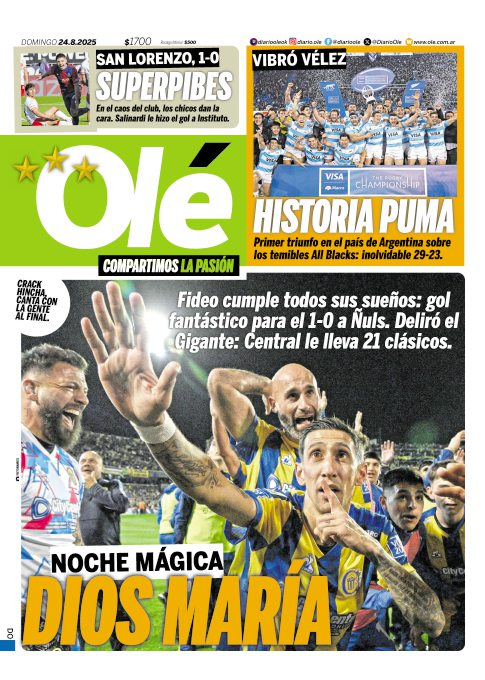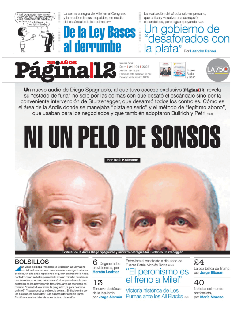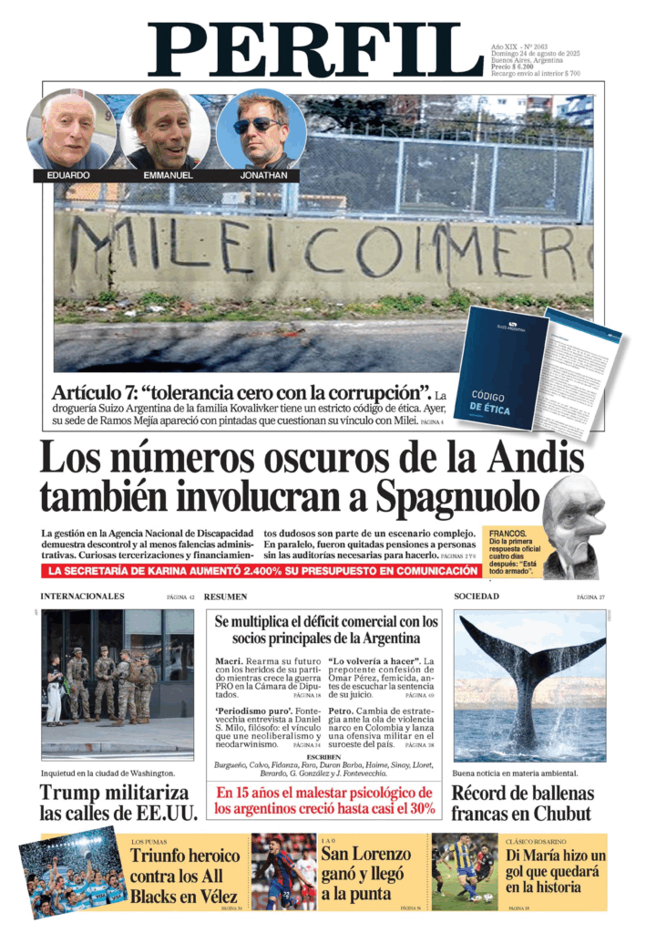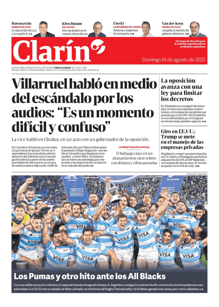Tapas de los principales diarios nacionales de este domingo 24 de agosto 24 agosto, 2025 La Nación Clarín Página 12 Olé Crónica Perfil