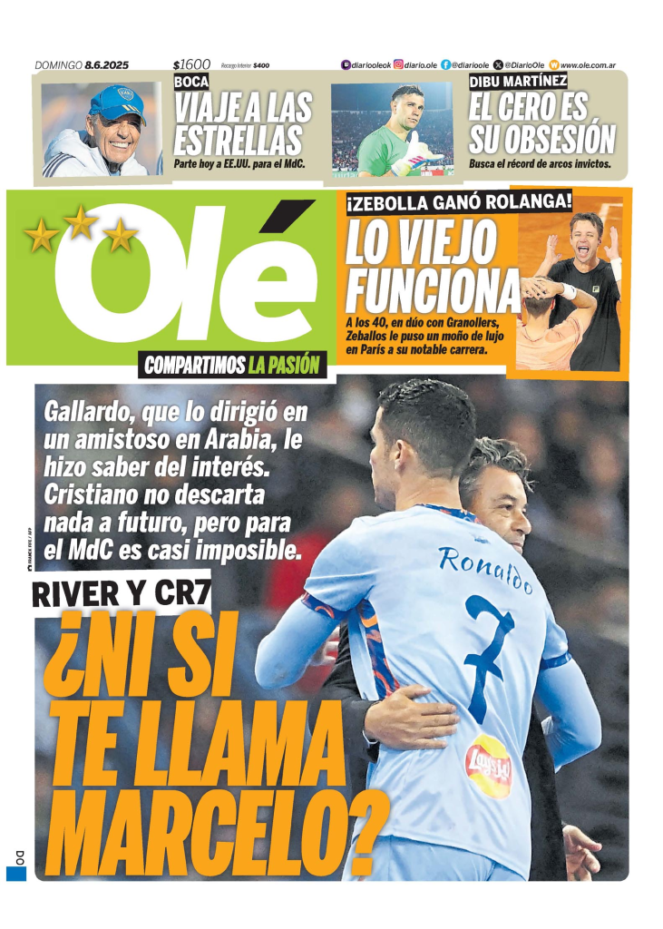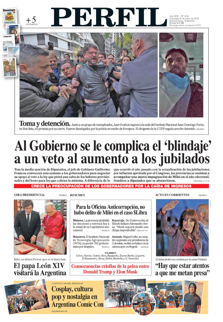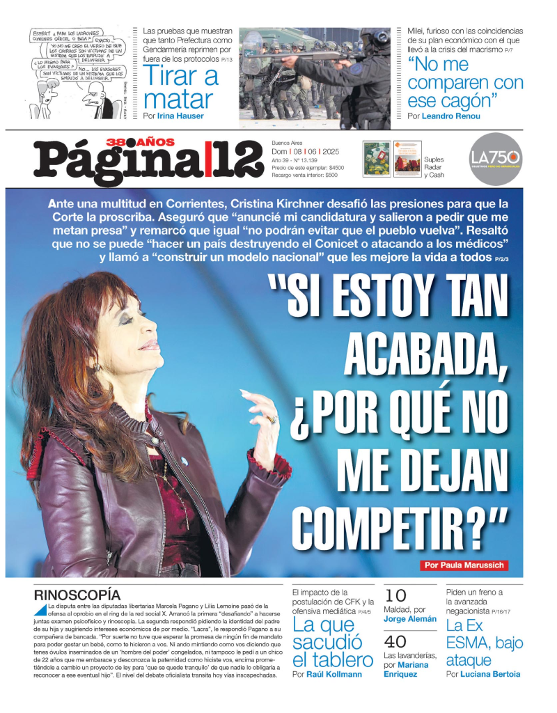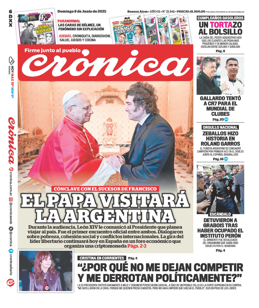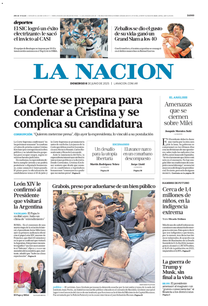 Tapas de los principales diarios nacionales de este domingo 8 de junio 8 junio, 2025 La Nación Clarín Página 12 Olé Crónica Perfil