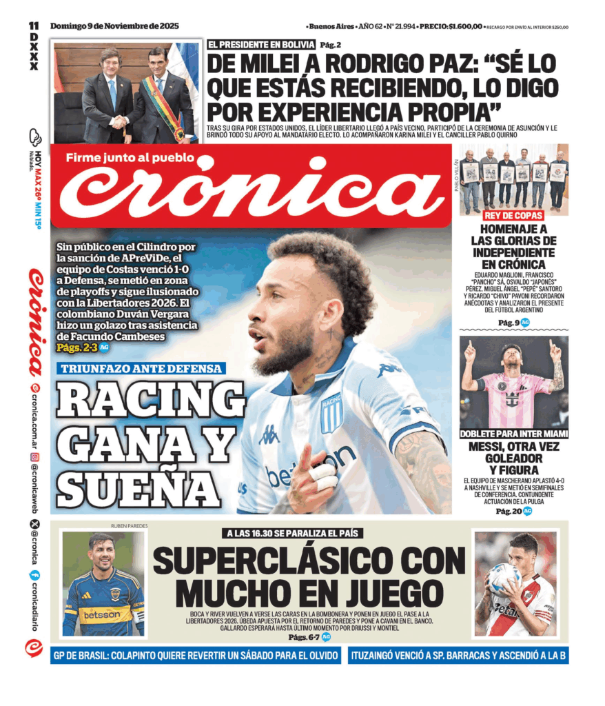 Tapas de los principales diarios nacionales de este domingo 9 de noviembre