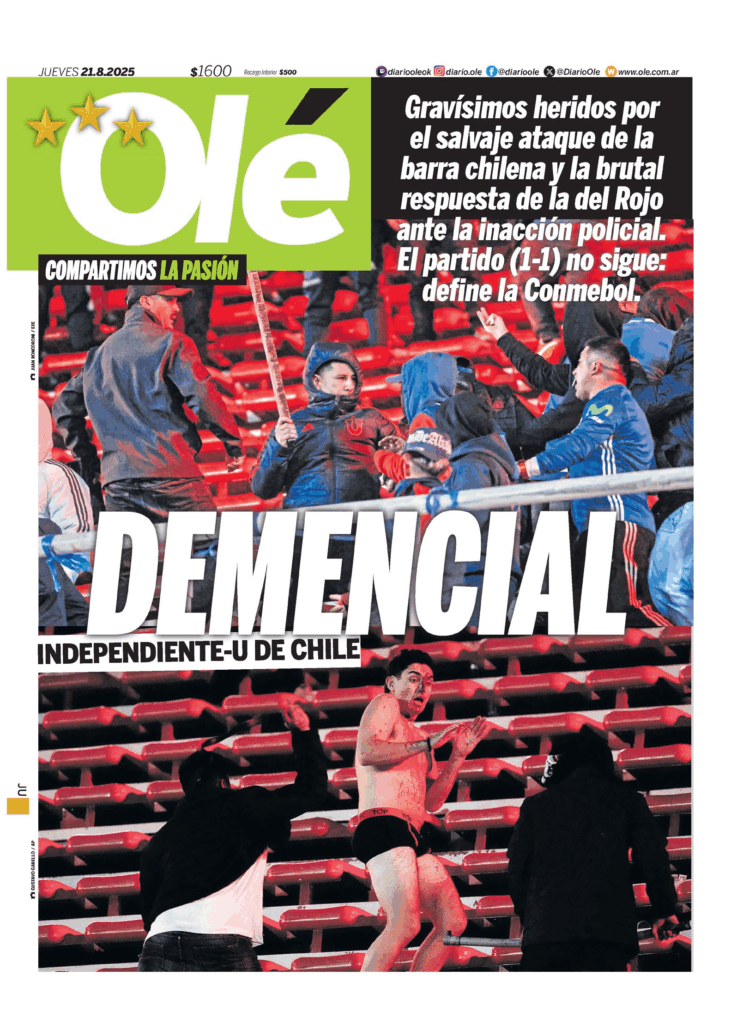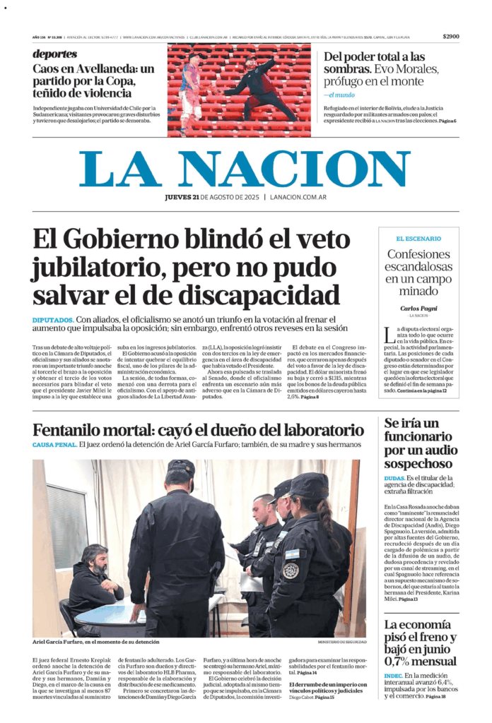 Tapas de los principales diarios nacionales de este jueves 21 de agosto 21 agosto, 2025 La Nación Clarín Página 12 Olé Crónica