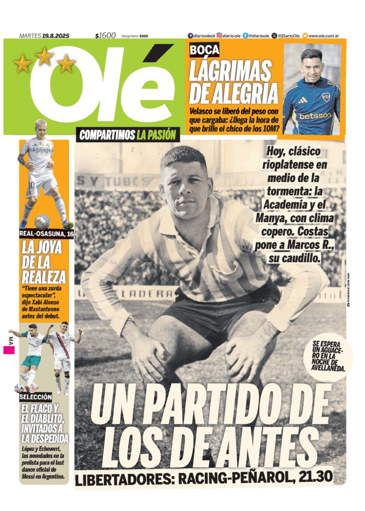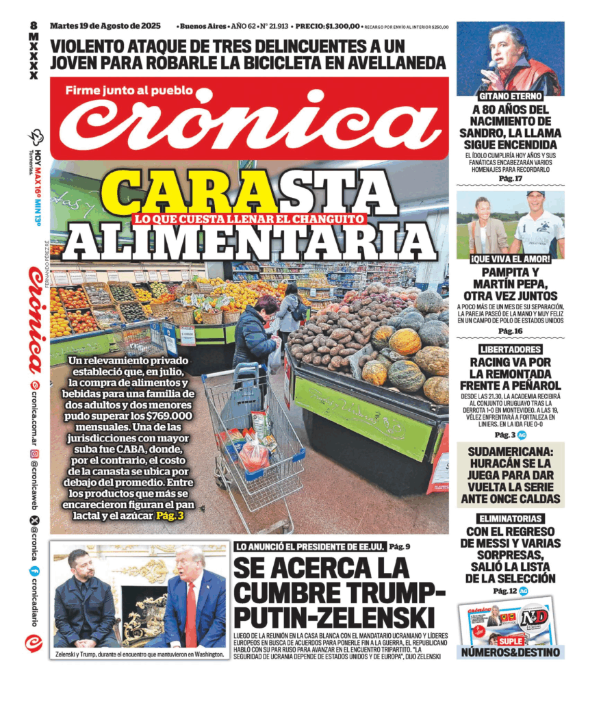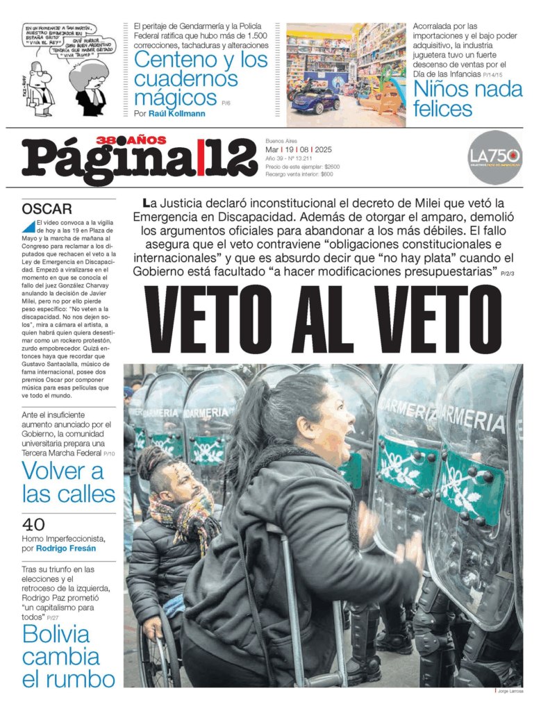 Tapas de los principales diarios nacionales de este martes 19 de agosto 19 agosto, 2025 La Nación Clarín Página 12 Olé Crónica