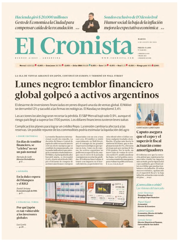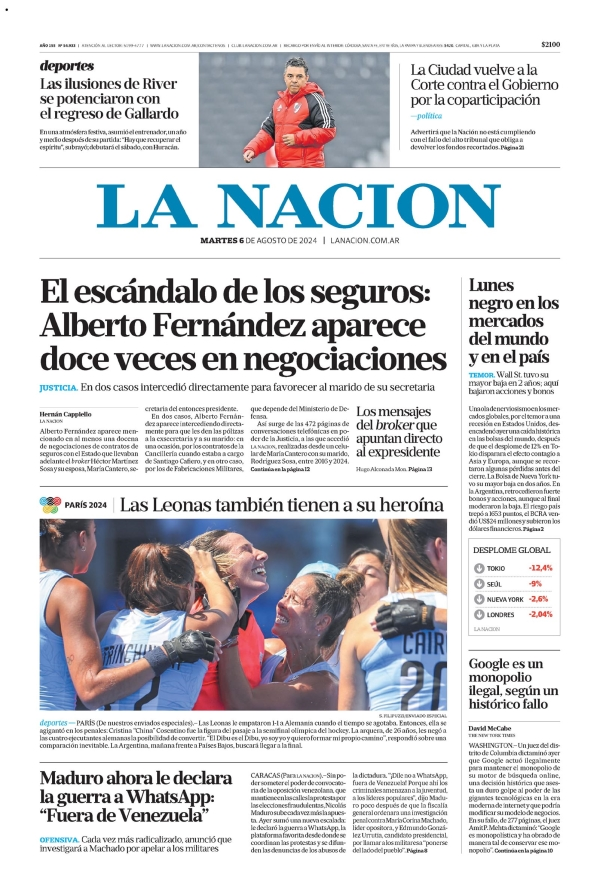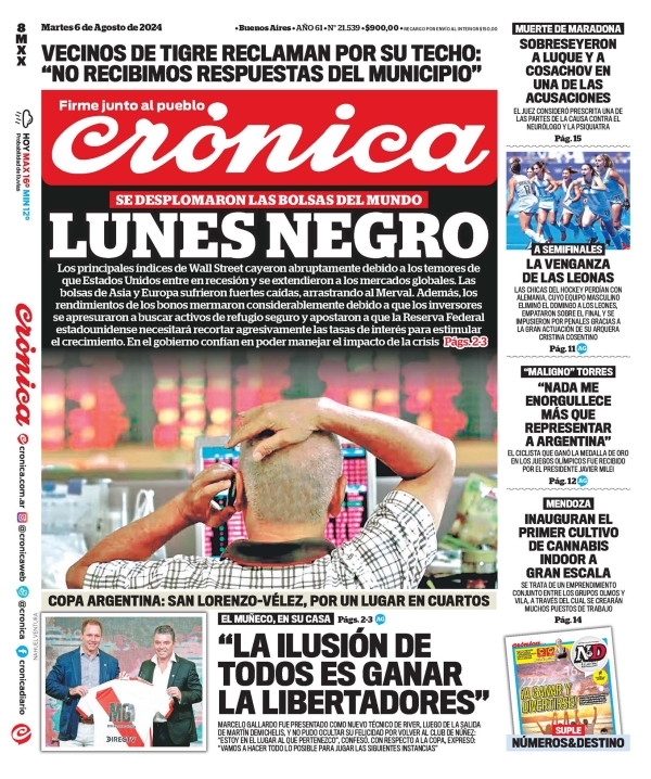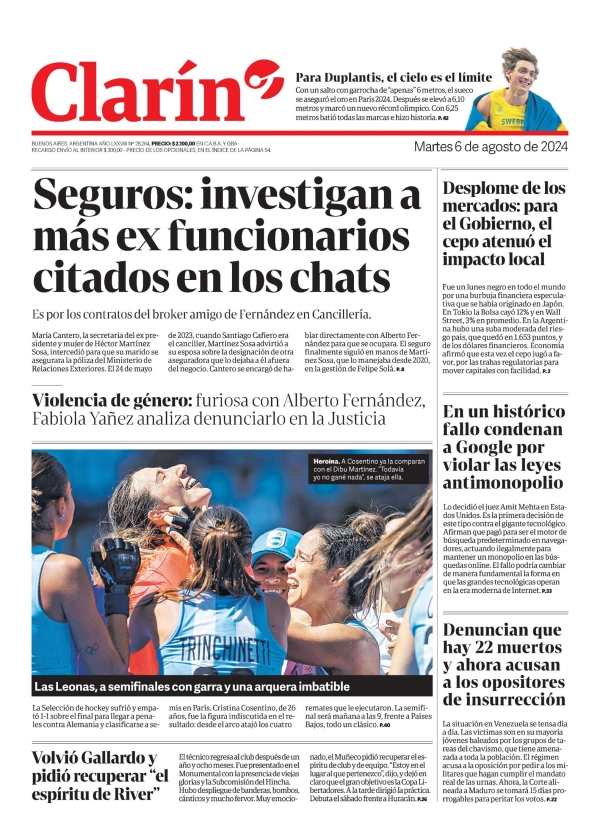 Tapas de los principales diarios nacionales de este martes 6 de agosto 6 agosto, 2024 La Nación Clarín Página 12 Olé Crónica El Cronista