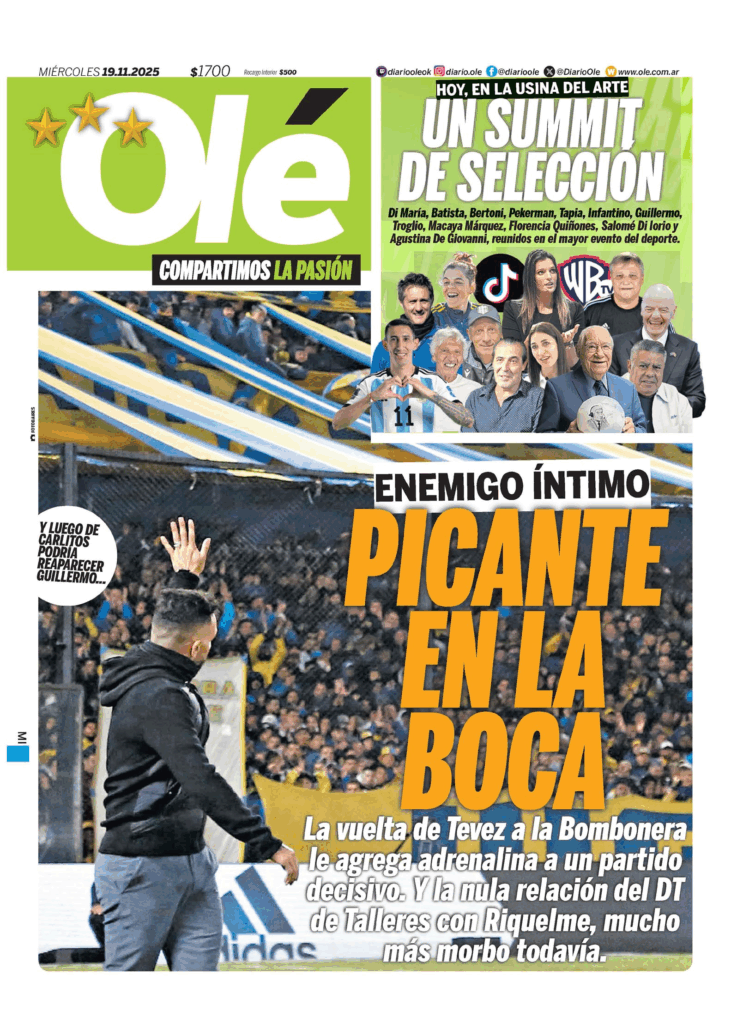 Tapas de los principales diarios nacionales de este miércoles 19 de noviembre 19 noviembre, 2025 La Nación Clarín Página 12 Olé Crónica