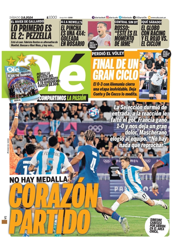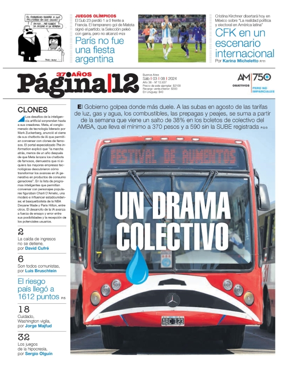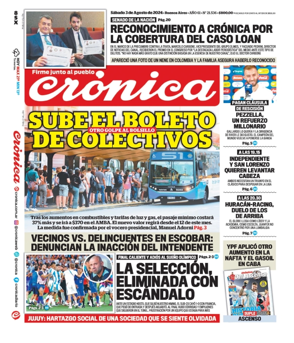 Tapas de los principales diarios nacionales de este sábado 3 de agosto 3 agosto, 2024 La Nación Clarín Página 12 Olé Crónica Perfil