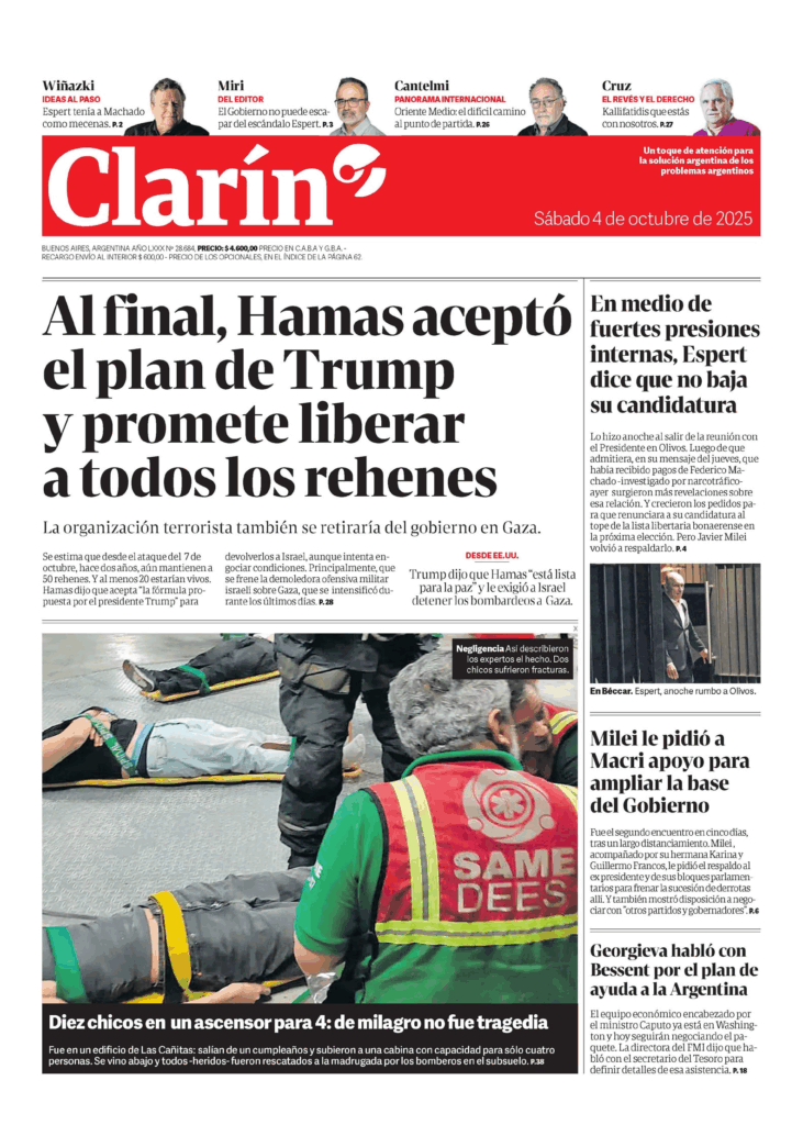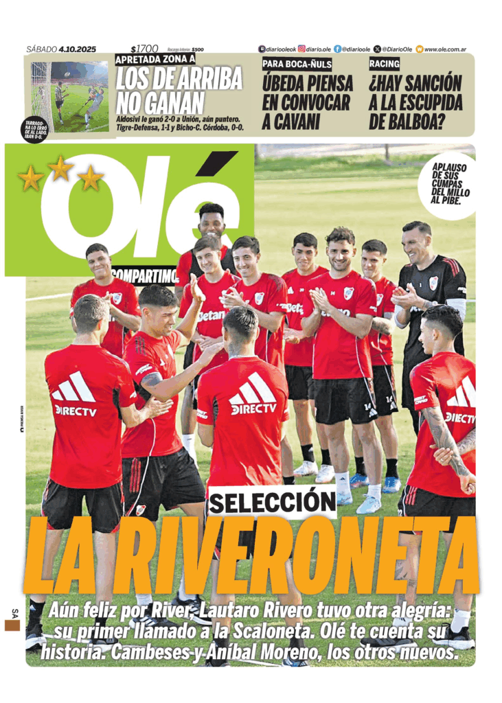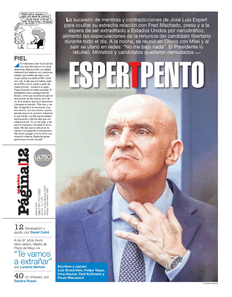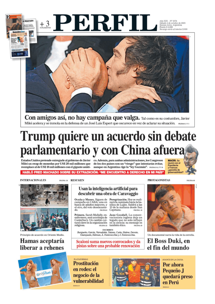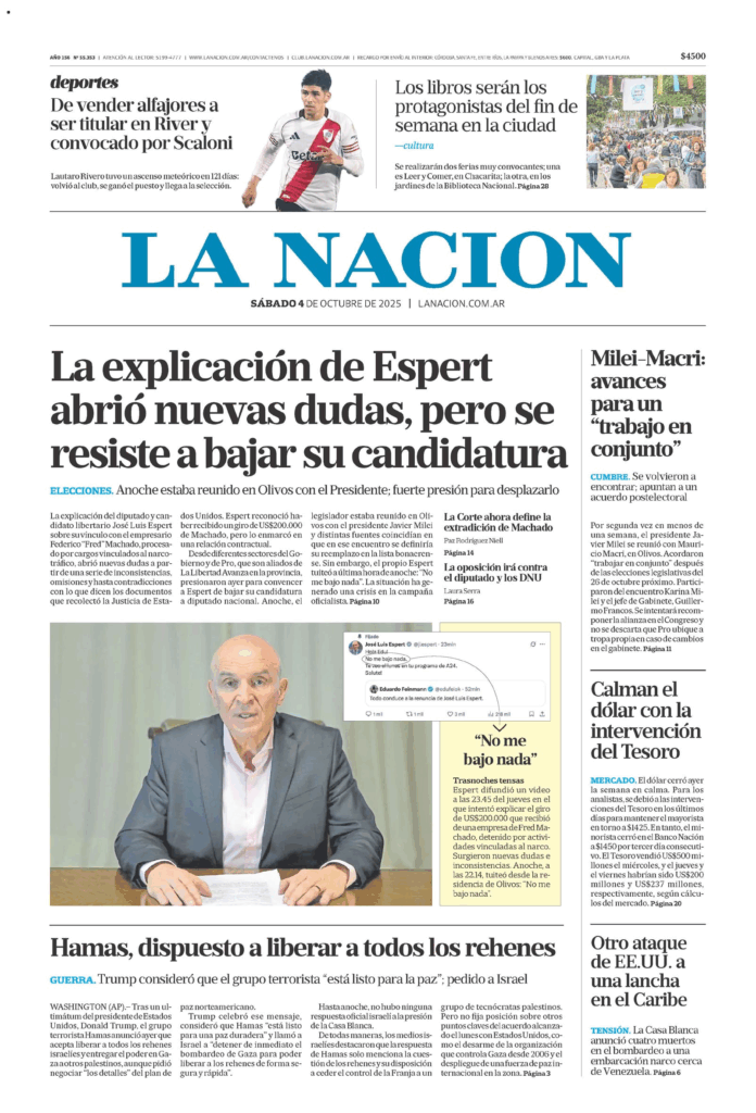 Tapas de los principales diarios nacionales de este sábado 4 de octubre 4 octubre, 2025 La Nación Clarín Página 12 Olé Crónica Perfil