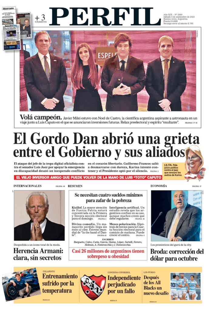 Tapas de los principales diarios nacionales de este sábado 6 de septiembre