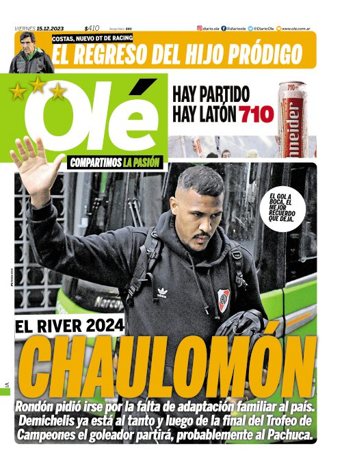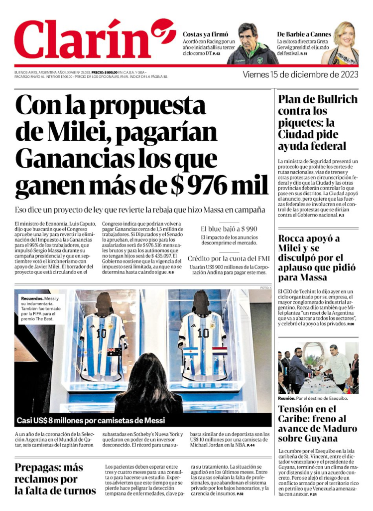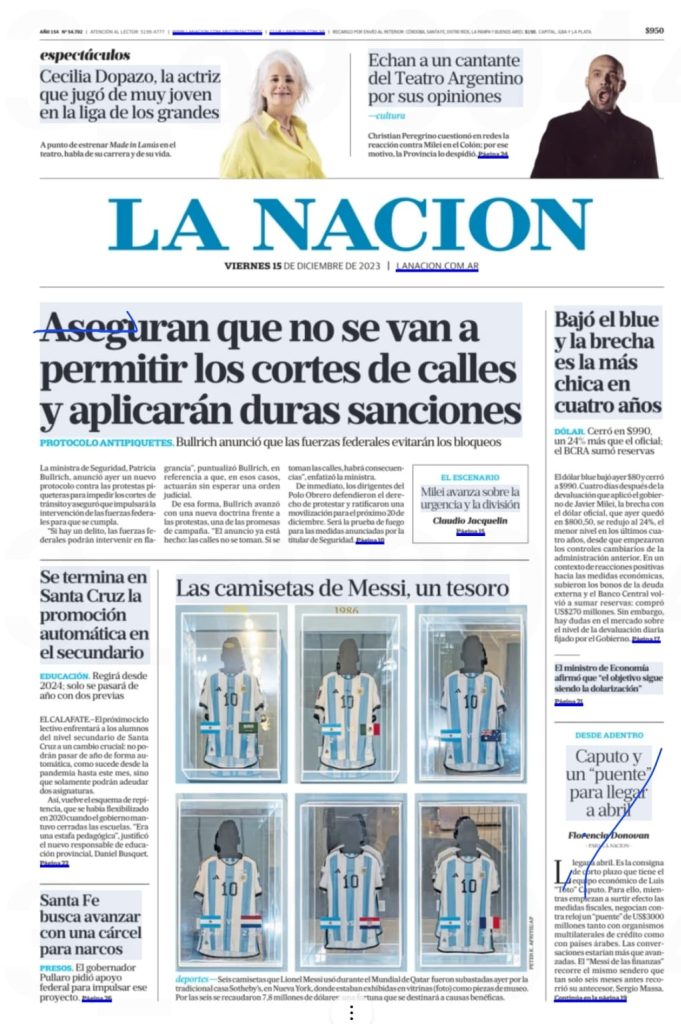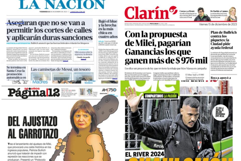 Tapas de los principales diarios nacionales de este viernes 15 de diciembre 15 diciembre, 202315 diciembre, 2023 La Nación Clarín Página 12 Olé