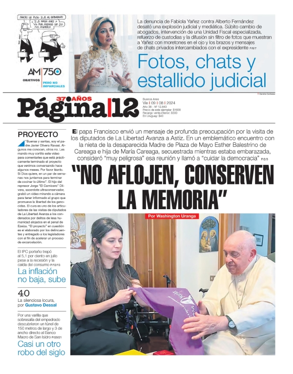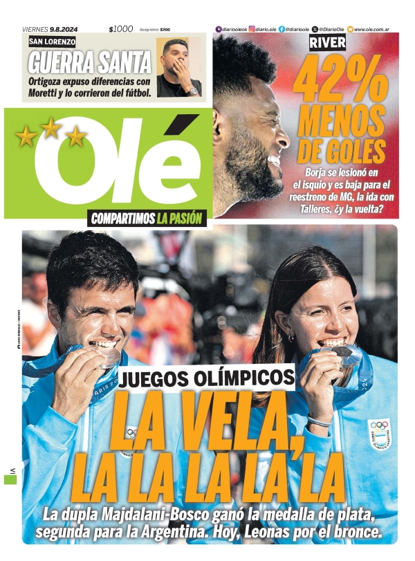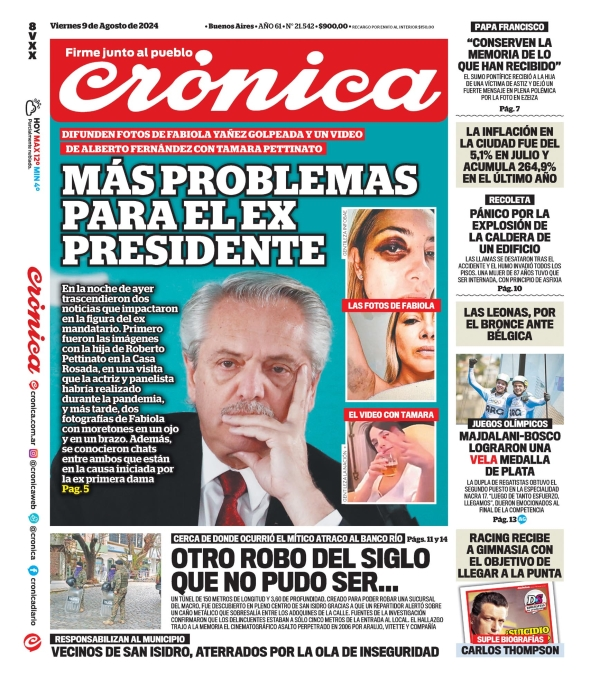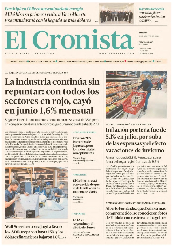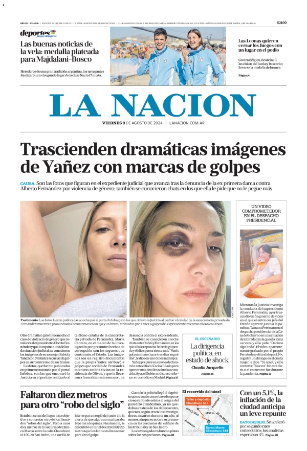Tapas de los principales diarios nacionales de este viernes 9 de agosto 9 agosto, 2024 La Nación Clarín Página 12 Olé Crónica El Cronista