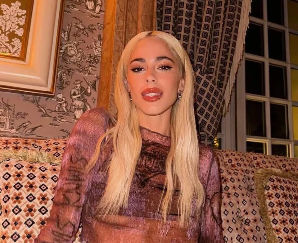 Tini combinó la pieza con un maquillaje acorde que resaltó el rubio de su cabello: delineado cat eye bien estirado, máscara de pestañas, sombras amarronadas a juego con el top, rubor y gloss natural en los labios.