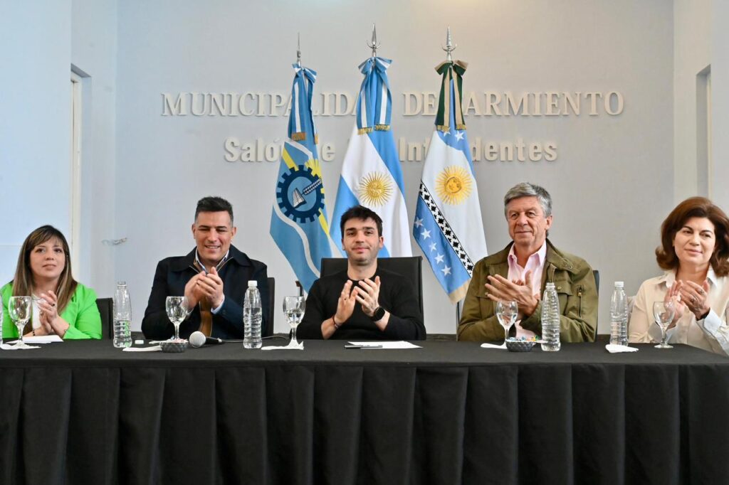 El gobernador del Chubut, Ignacio “Nacho” Torres, encabezó la firma del convenio para la construcción de un Salón de Usos Múltiples y anexos del Sindicato de Obreros y Empleados Municipales de Sarmiento (SOEMS). El acuerdo, rubricado junto al intendente local, Sebastián Balochi, establece el otorgamiento de un aporte económico de $260 millones por parte del Gobierno provincial, destinado exclusivamente a la edificación del inmueble que beneficiará a los empleados municipales, conforme a los proyectos técnicos y de obra oportunamente presentados.