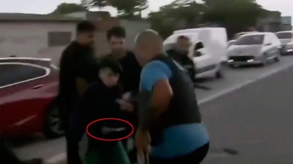 Un chico de aproximadamente 10 años intentó apuñalar a un efectivo de la policía de la provincia de Buenos Aires mientras vecinos de Villa Azul, en Bernal, Quilmes, cortaban el Acceso Sudeste en protesta por el asesinato de un joven de 16 años. Las imágenes fueron captadas por un móvil que se encontraba en el lugar.
