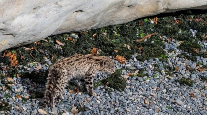 En Punta Loma, turistas y guardafaunas advirtieron la presencia de un gato montés junto a los lobos marinos. Guardafaunas del lugar explicaron que el animal pudo observarse desde el jueves 4 al domingo 7.