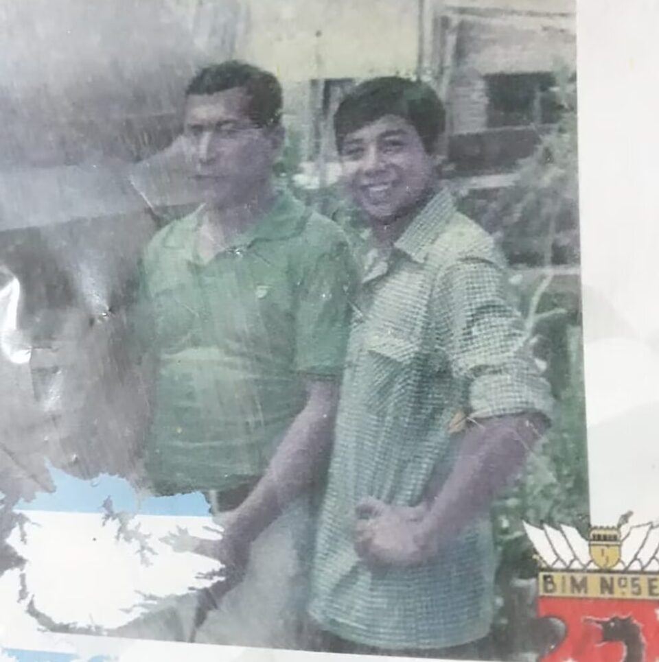 El soldado Vargas con su papá, quien fue voluntario para colaborar en tareas de carga y descarga en Puerto Argentino (José Vargas)