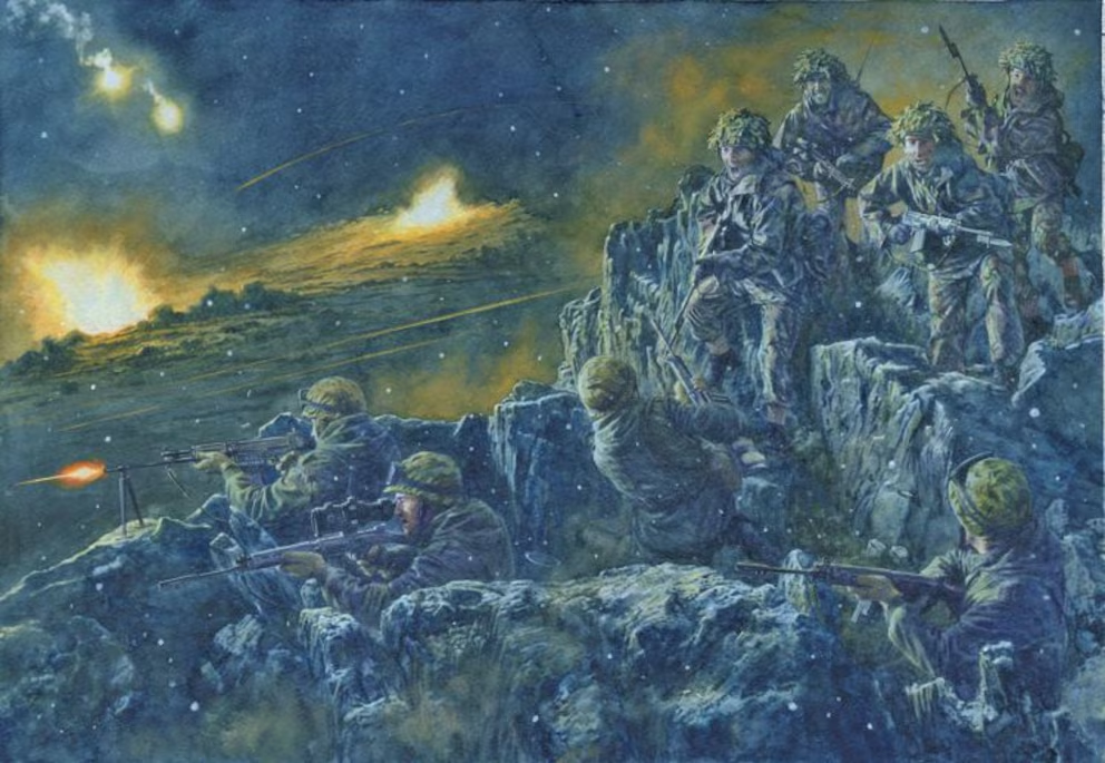 La batalla de Tumbledown, y el infierno que veía el hijo de Galarza (Cuadro de Steve Noon)
